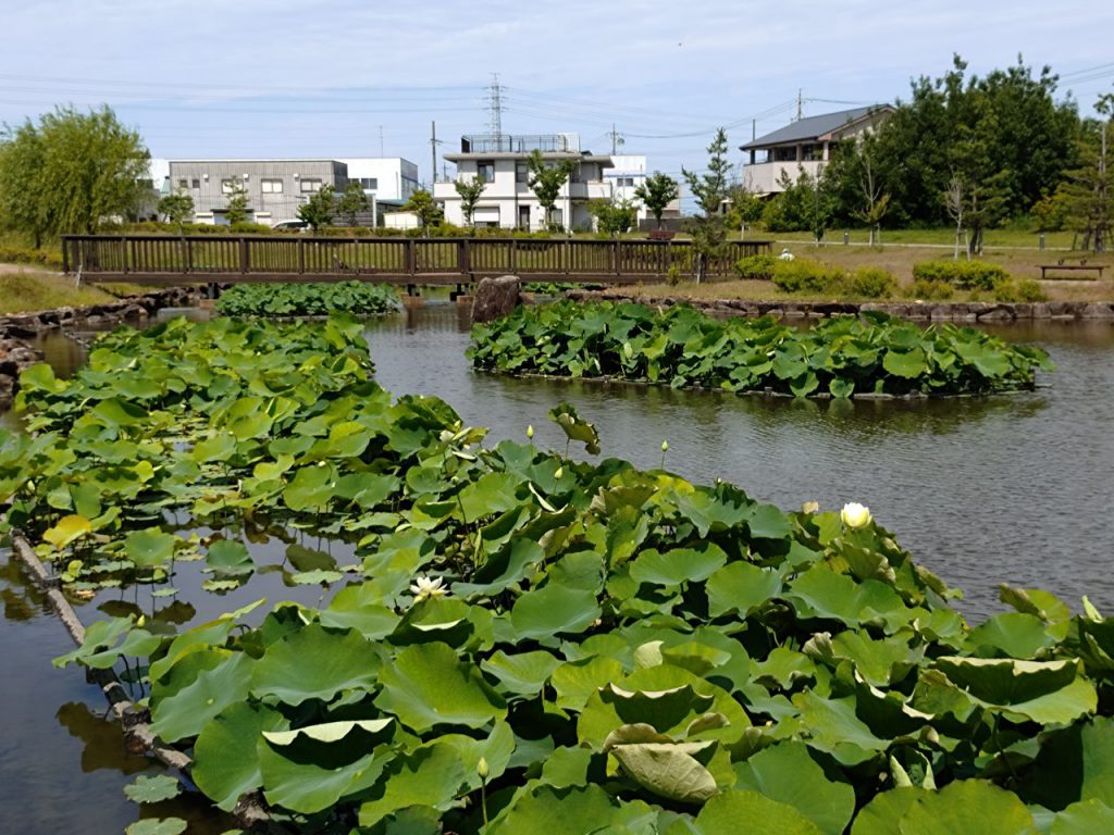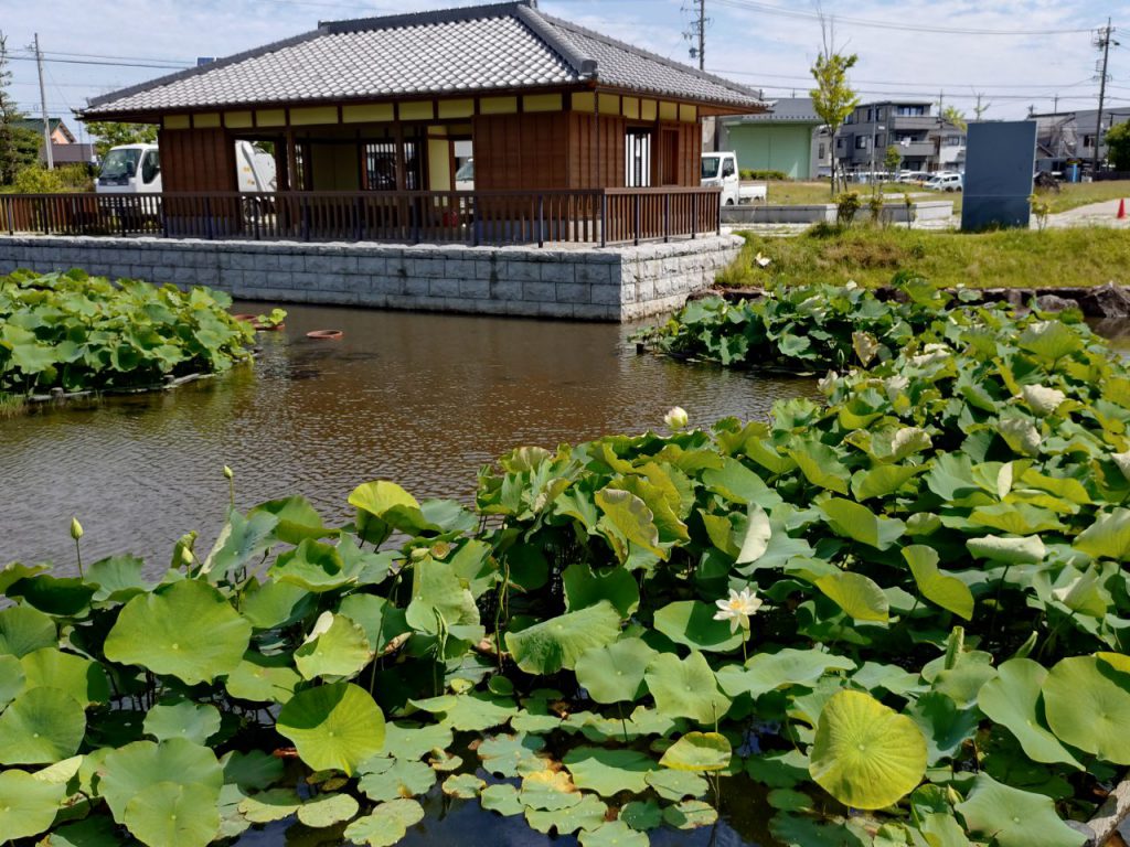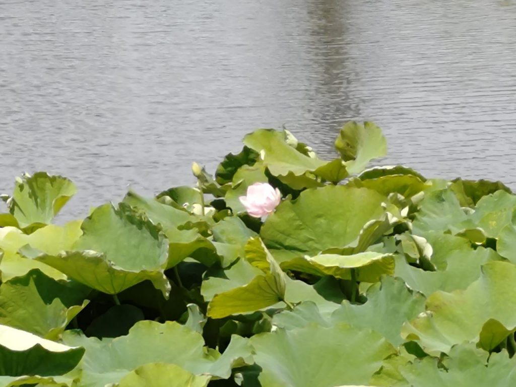 池の中央に近いのと周りの葉の方が背が高いので良い写真が撮れませんが、