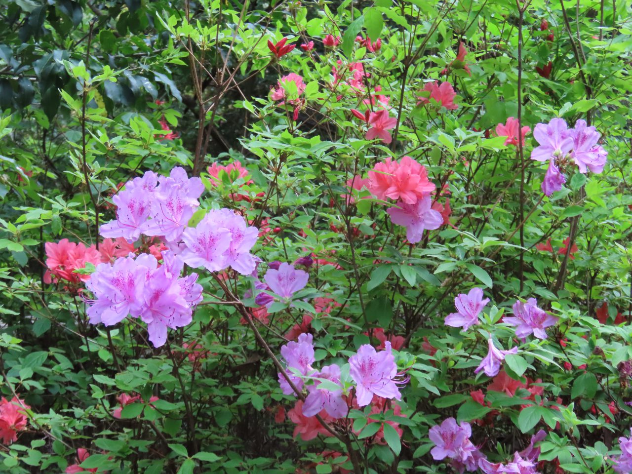 ツツジ、シャクナゲ開花状況(4/24) 更新日 2025/04/25 展望ツツジ園の開花状況です! 今年は例年に比べ開花が遅れており、ヒラドツツジ、オオムラサキツツジが1~2分、キリシマツツジが3~4分咲きといった状況です。 みと側の園路沿いではヤマツツジなど咲き始めました! ロックガーデンのシャクナゲも開花が始まっています! 淡いピンク色のツクシシャクナゲから開花が始まり、濃いピンク色の西洋シャクナゲも徐々に咲き始めています。 また開花状況をお知らせいたします!!
