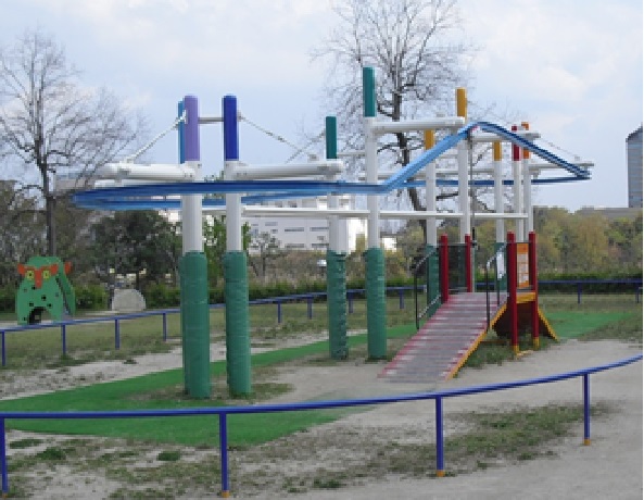 芝生広場 遊具名:フォレストハウス 対象年齢6才~12才 遊具名:ロープウェイ 対象年齢6才~12才 足と手でしっかりとひもをつかみましょう。 【お願い】ぶら下がり紐は結ばないようにしてください。 遊具名:エンドレスターザンロープ 現在使用禁止 対象年齢6才~12才 大きくゆすぶられるので、自信のない人はやめましょう 【お願い】ぶら下がり紐は結ばないようにしてください。