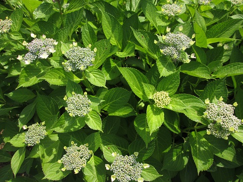 手まり状にお花が咲くもの →ホンアジサイ