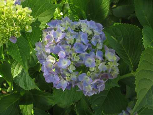 左のアジサイはまだ開きはじめで 色が薄いですね