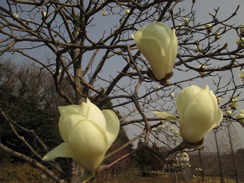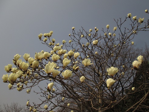 白くて 大きな花びらのお花 ハクモクレンが たくさんのお花を咲かせています