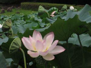 ただいま公園では 夏の間 水辺で涼しげに咲いたハスの