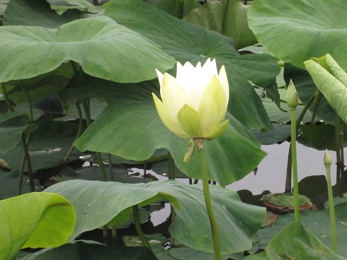 ★白いハスの咲き始めの様子★