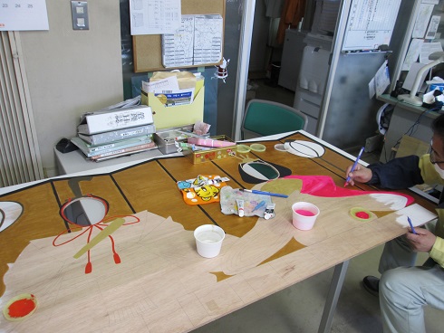 ベニヤ板に下書きを鉛筆書きして 着色していきます!