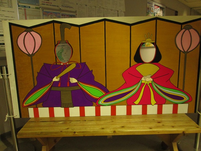 ひな祭りの 顔出しパネルを 昨日 設置いたしましたー♪
