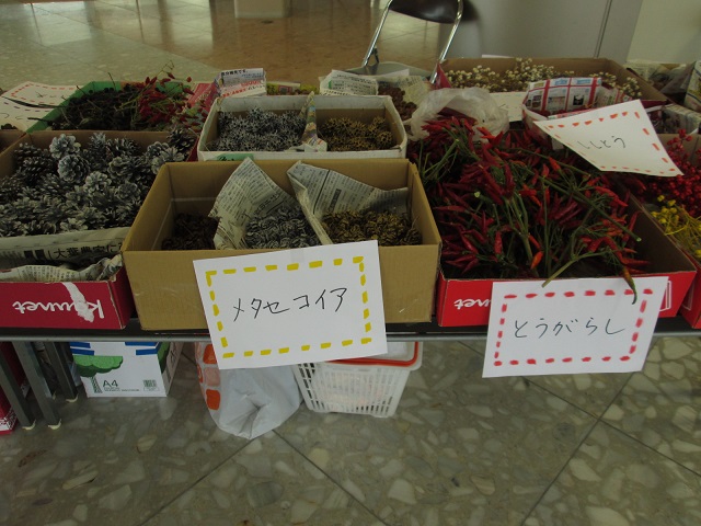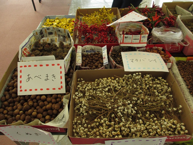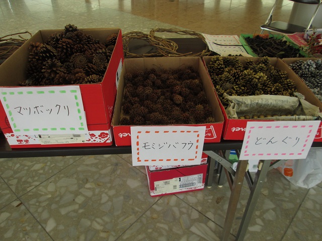 公園が用意をした木の実などと それぞれが持込みをした材料で