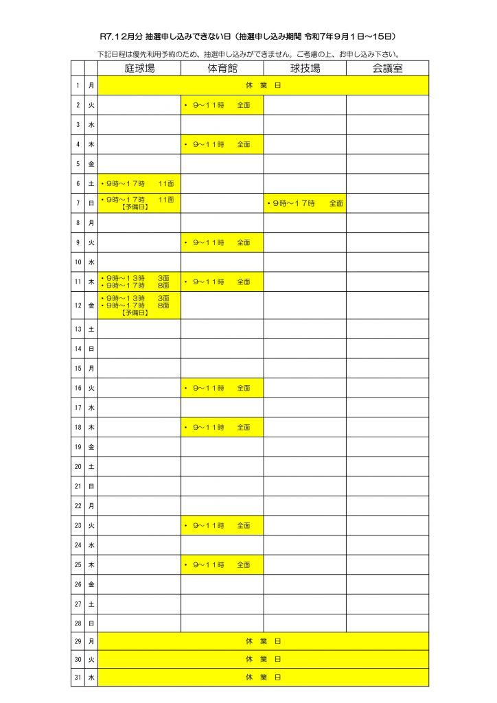 休業日のお知らせ