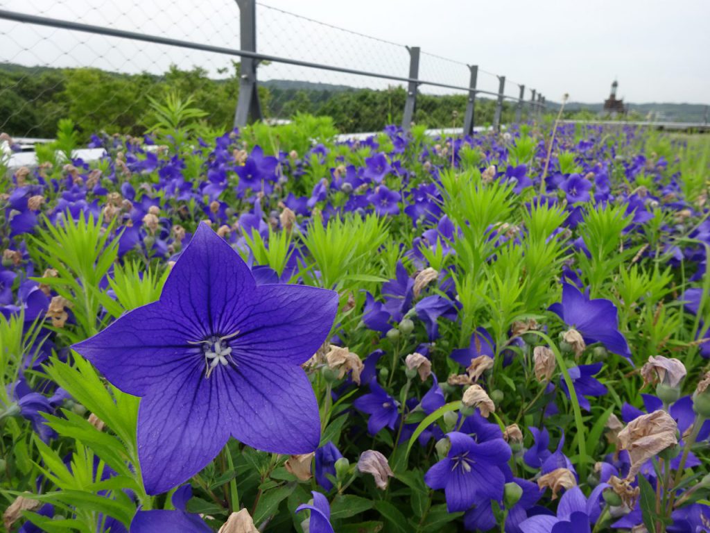交流センタ-屋上も「キキョウ」が見頃です。