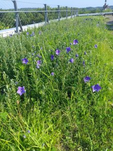今年もキキョウが綺麗に咲いています。これは、交流センター屋上庭園の様子。紫の淡い色がまるで絨毯のように綺麗です。