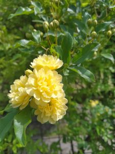 花の広場のモッコウバラが咲き始めています。