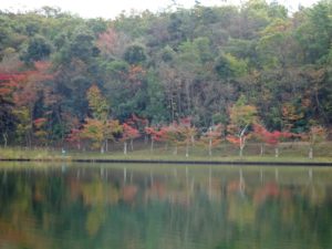 今日のように風のない日は、池に紅葉が映り込み、いっそう美しい景色が楽しめますよ。