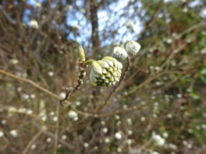 こちらは大花壇のミツマタ、まだ固いつぼみです。