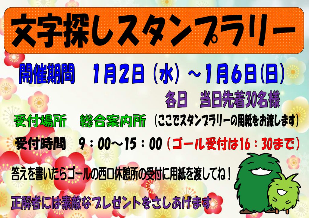 「文字探しスタンプラリー」は1月6日までの開催です。