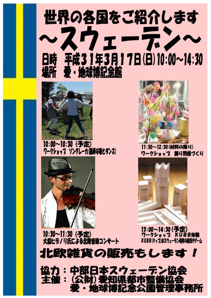 3月17日(日)10:00から、愛・地球博記念館で「世界の各国をご紹介します ~スウェーデン~」が開催されます。