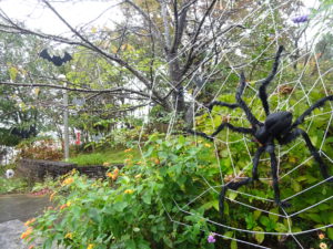 花の広場ではハロウィンの飾りつけがあちこちに。