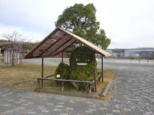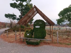 園内各所にあるモリゾー・キッコロトピアリーも屋根を付けて冬に備えています。