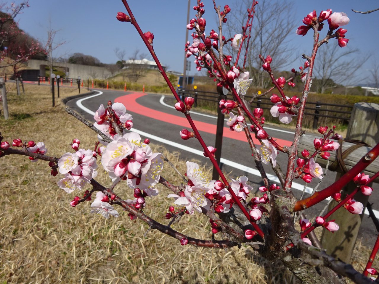 ブンゴウメは、サイクリングコースの4キロを過ぎたあたりにありますよ。