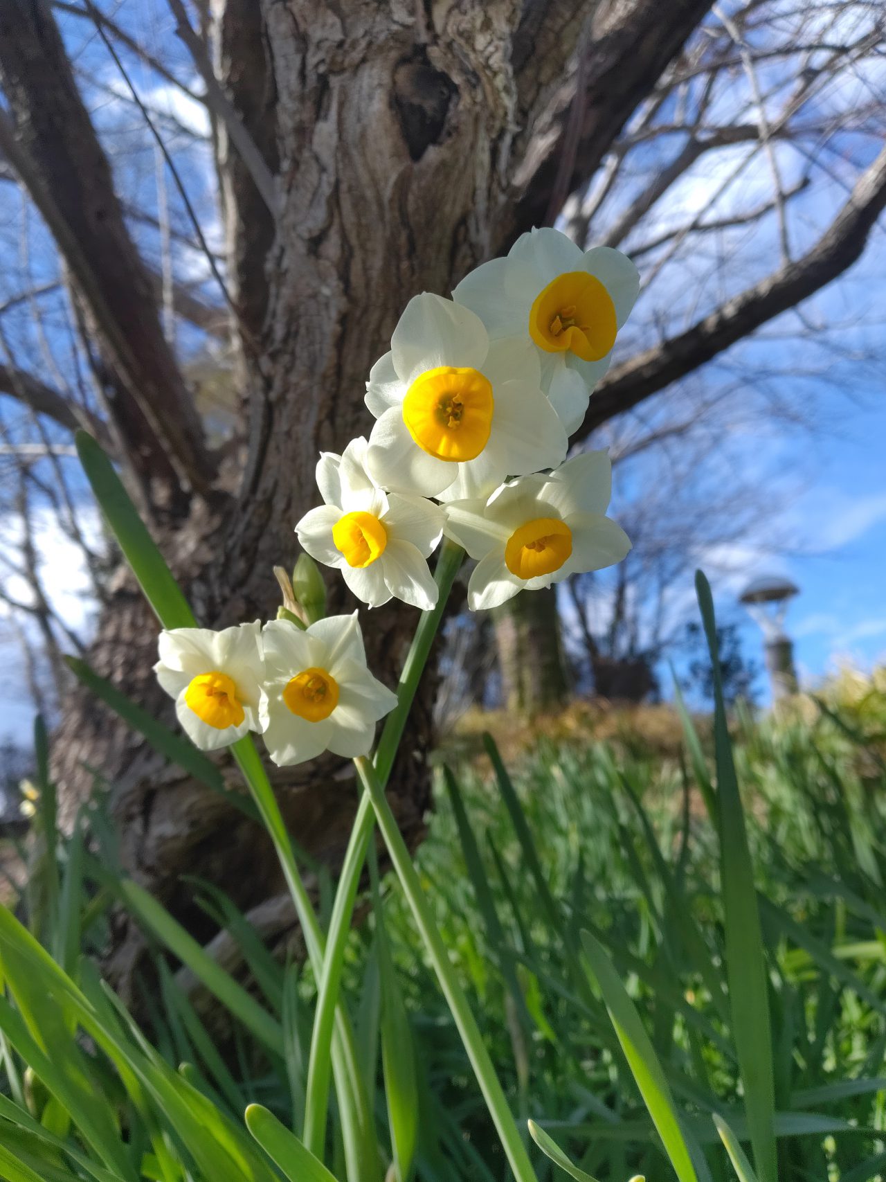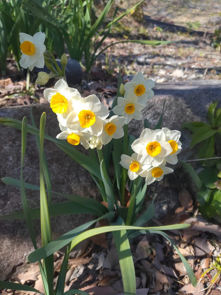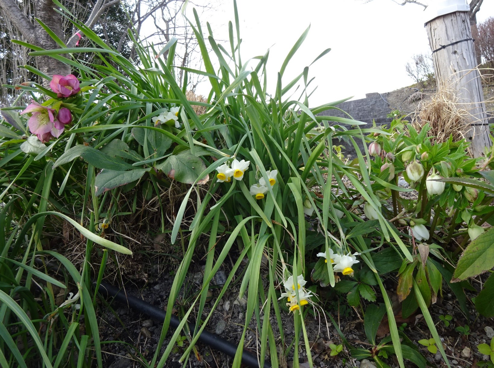花が少ないこの時期ですが、大花壇にスイセンが咲いていました。