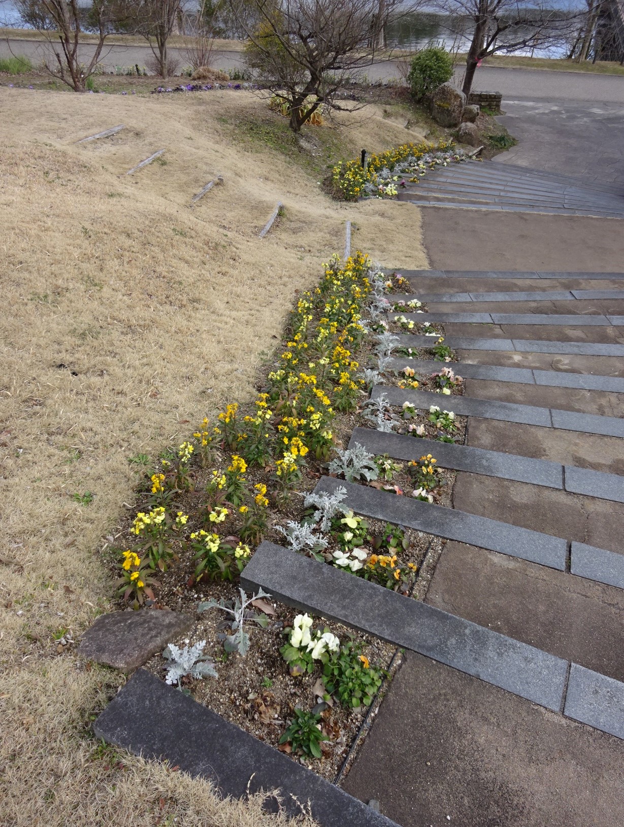 園内で咲いているお花は少なくなってきてしまいましたが、ここ大花壇ではスイセンの他にも様々なお花が咲いています。