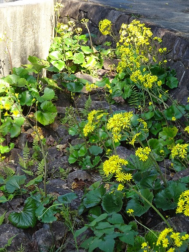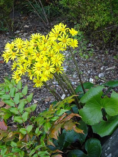 彩りの少ないこれからの季節、ツワブキの花の黄色と艶のある緑の葉はとても貴重ですね。