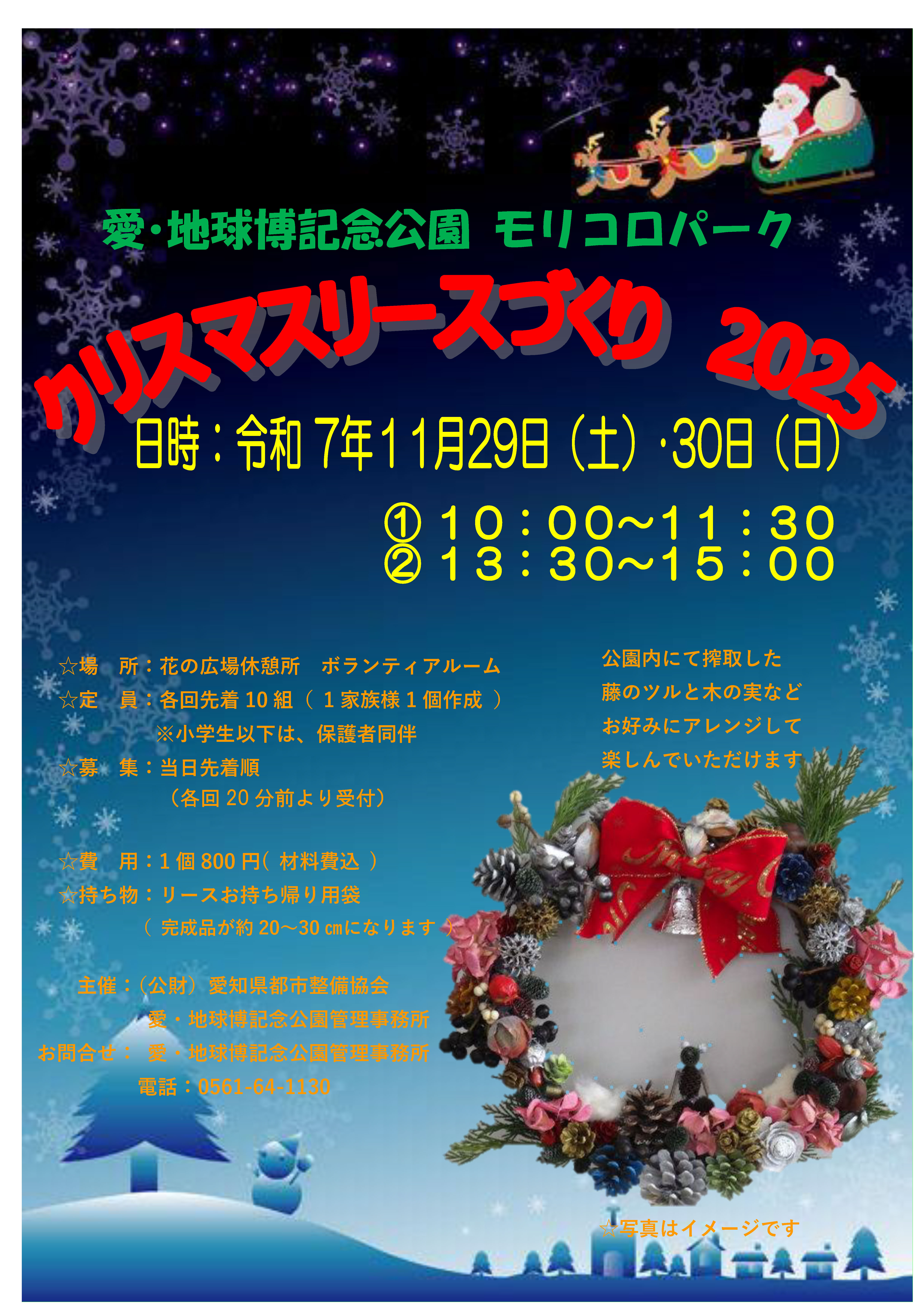 公園内にて採取した藤のツルと木の実などをお好みに応じてアレンジし、リ-ス作りを楽しんでいただける人気イベントです。