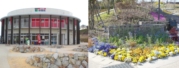 休憩所付近の大花壇や花弁花壇は、花の広場休憩所を活動拠点とする、