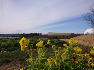 今はまだ少~しだけ菜の花が咲いていますが、三日月休憩所近くでは4月上旬ごろから菜の花畑が楽しめます。