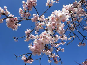 どれもソメイヨシノよりピンク色が濃く青空によく映えます。