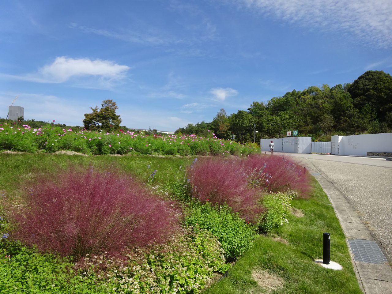 コスモスの開花が進めばコスモスとミューリーグラスの競演が楽しめそうですね。