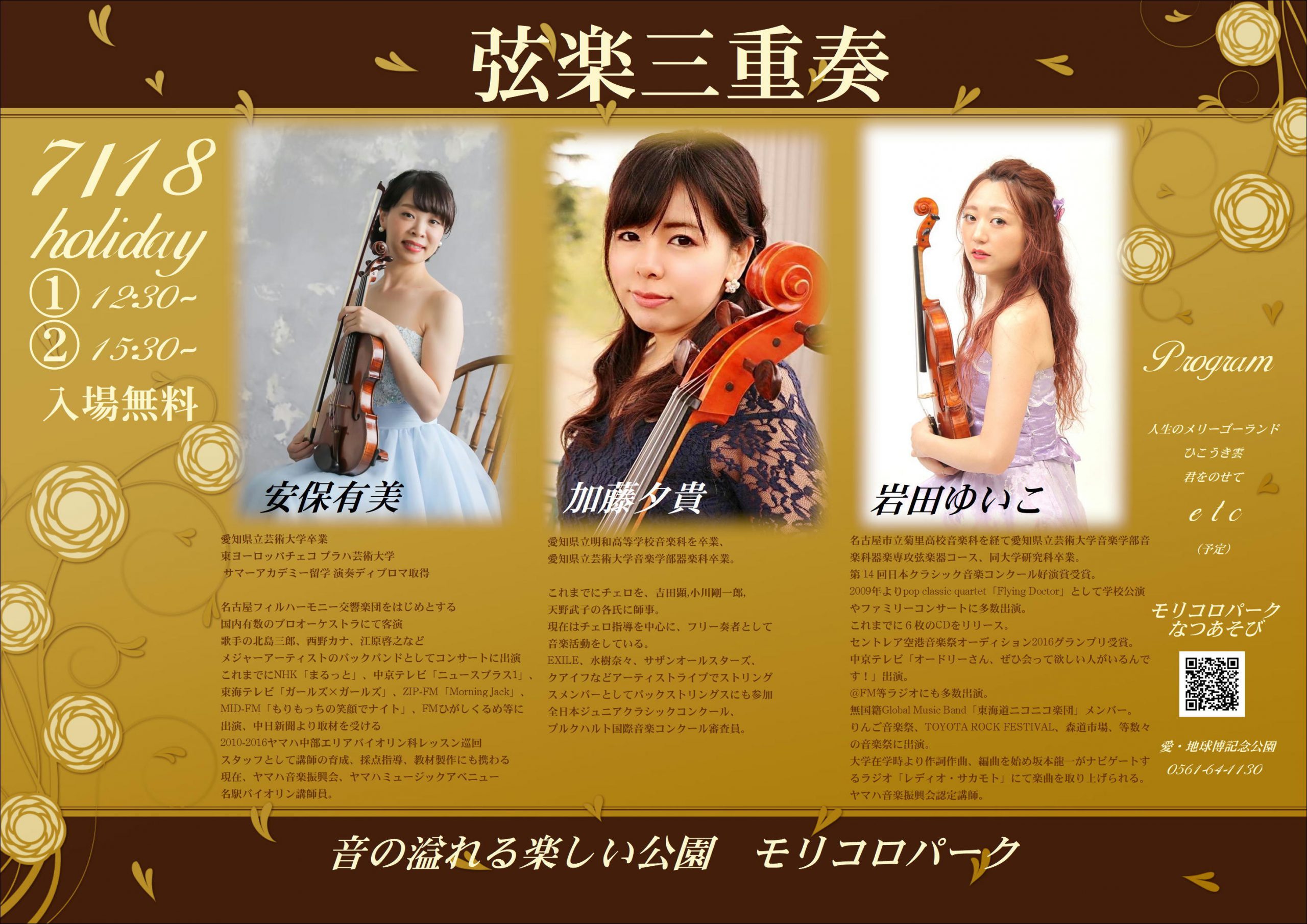 | 12:30~、15:30~ | 【弦楽三重奏】安保有美、加藤夕貴、岩田ゆいこ |