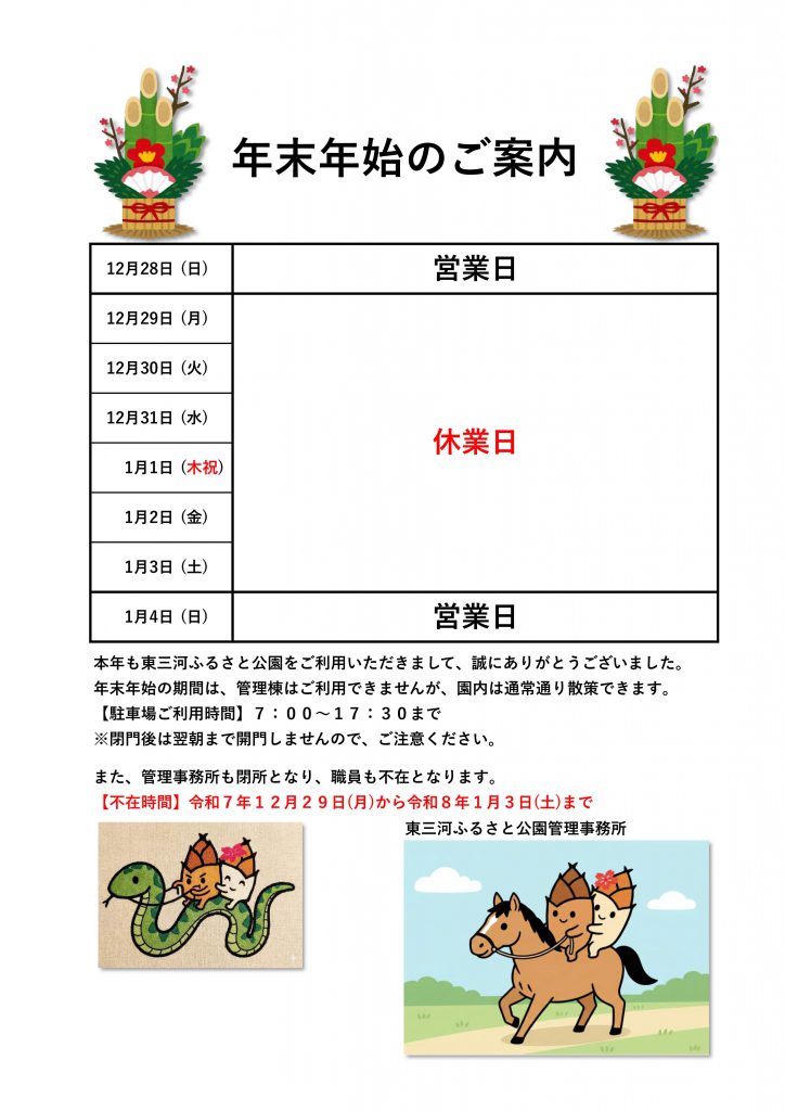 本年も東三河ふるさと公園をご利用いただき、誠にありがとうございました。
