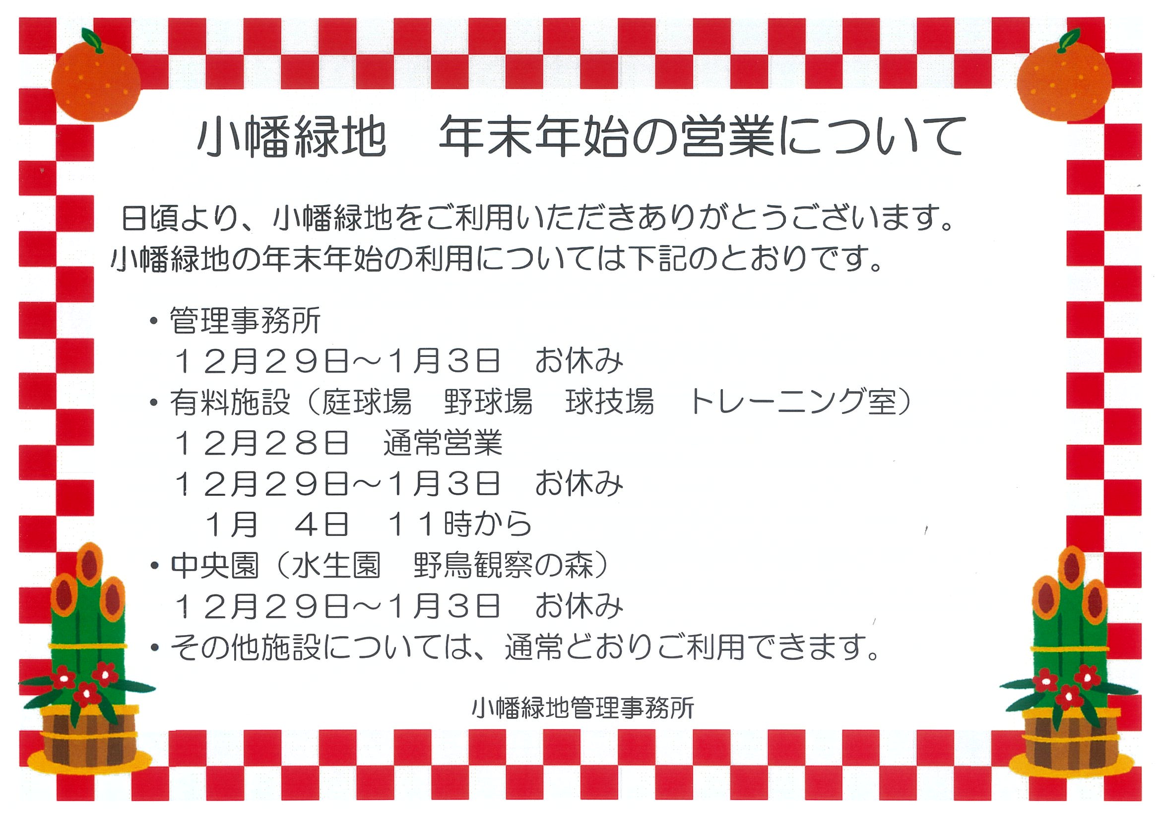 土・日・祝日に公園を利用されるお客様へのお願い