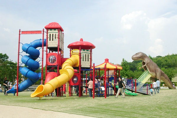2匹の恐竜滑り台と大型複合遊具が子供に大人気の大高緑地屈指の好スポット。