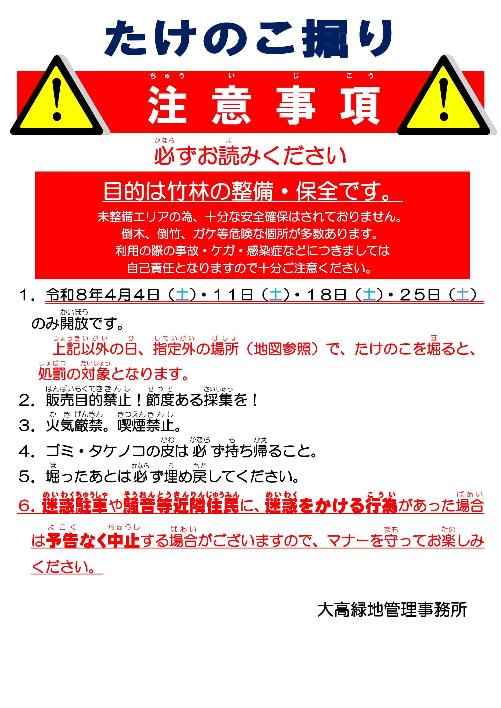 その他、詳細は以下のポスターをお読みいただき、ルールを守ってお楽しみ下さい。
