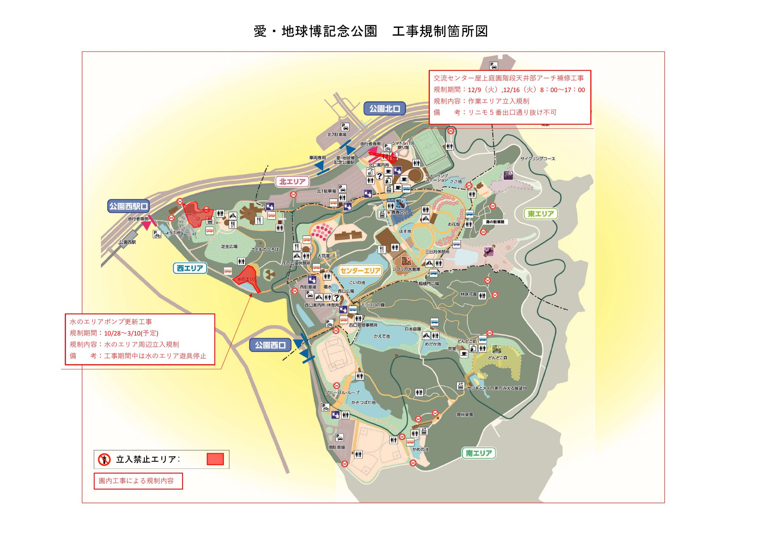 園内工事作業により、園内各所を規制しております。