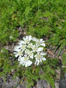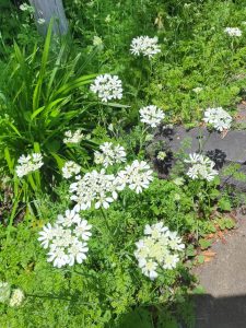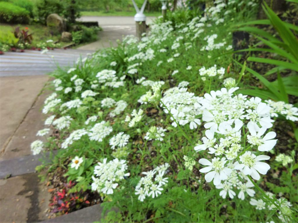 大花壇で白い可憐な花を見つけました。「オルラヤ」という花だそうです。