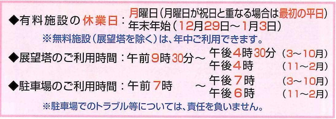 園内の各施設につきまして、下記のとおりご利用時間が変更となります。