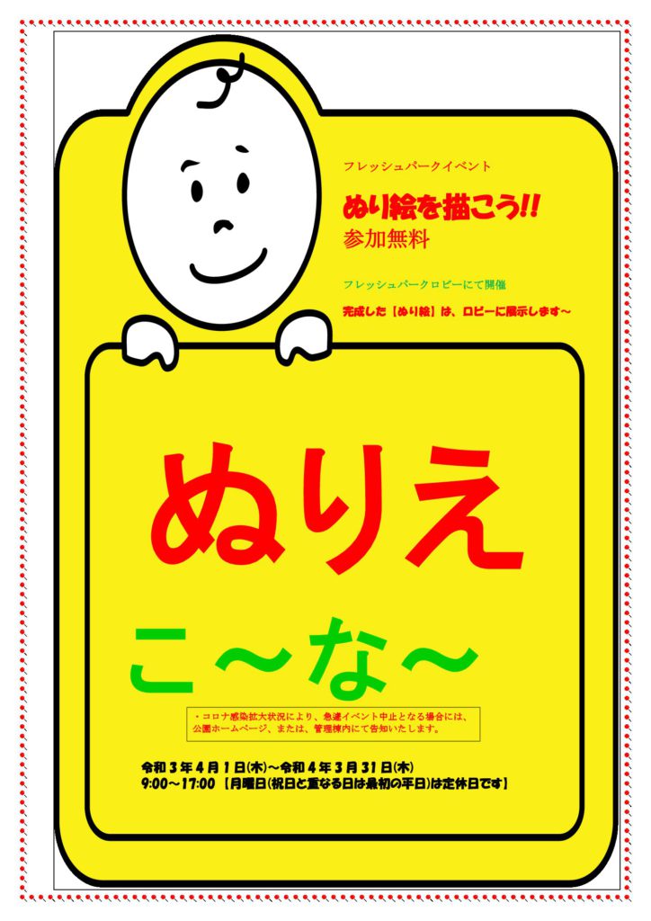 ぬり絵を描こう!! 開催日 常時開催 Warning: Undefined array key "file" in /home/xs210458/aichi-koen.com/public_html/wp-includes/media.php on line 1788 フレッシュパークセンター内ロビーにて、色鉛筆等を準備しています。 お子様連れで来園された皆様方、是非、ぬり絵を楽しんでくださいね♪ 描いたぬり絵は、ロビーに展示しますよ!!