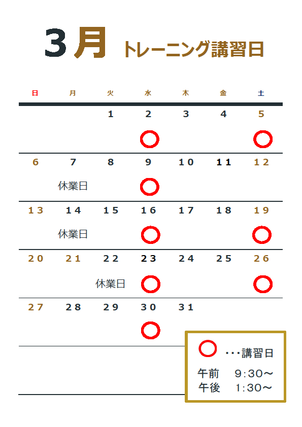3月トレーニング講習日のお知らせ