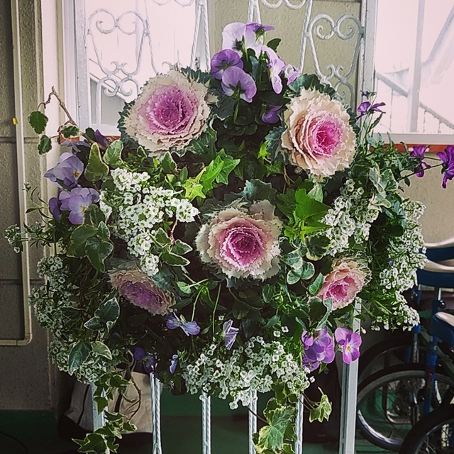 今回も写真はインスタ映えを狙って撮影した完成見本を紹介しますが、葉ボタンを使ったハンギングバスケットで正月を迎えるにも良さそうです(*^_^*)