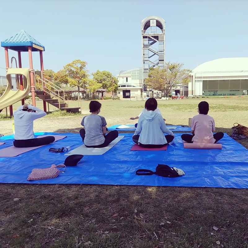 本日(4/12)は晴れて汗ばむ陽気のため、青空ヨガ教室は木陰で行い、参加者の皆様から気持ち良かったと好評でした(*^_^*)