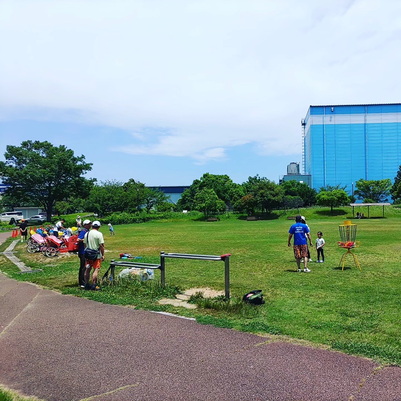 本日(6/4)ディスクゴルフ体験会を開催中p(^ ^)q