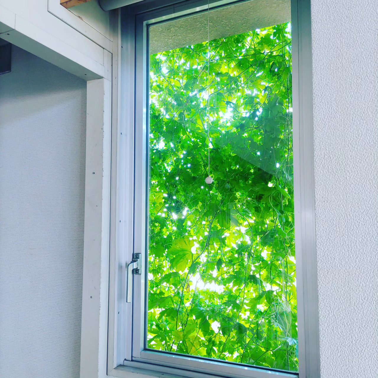 グリーンカーテン内側から(*^_^*) 更新日 2023/08/27 グリーンカーテン内側からですが、日差しを遮る効果かなりあるのかも(*^_^*) 今日(8/27)の予想最高気温は33度となっていますが、週末縁日もありますので、ぜひフレッシュパークへお越しくださいo(^o^)o