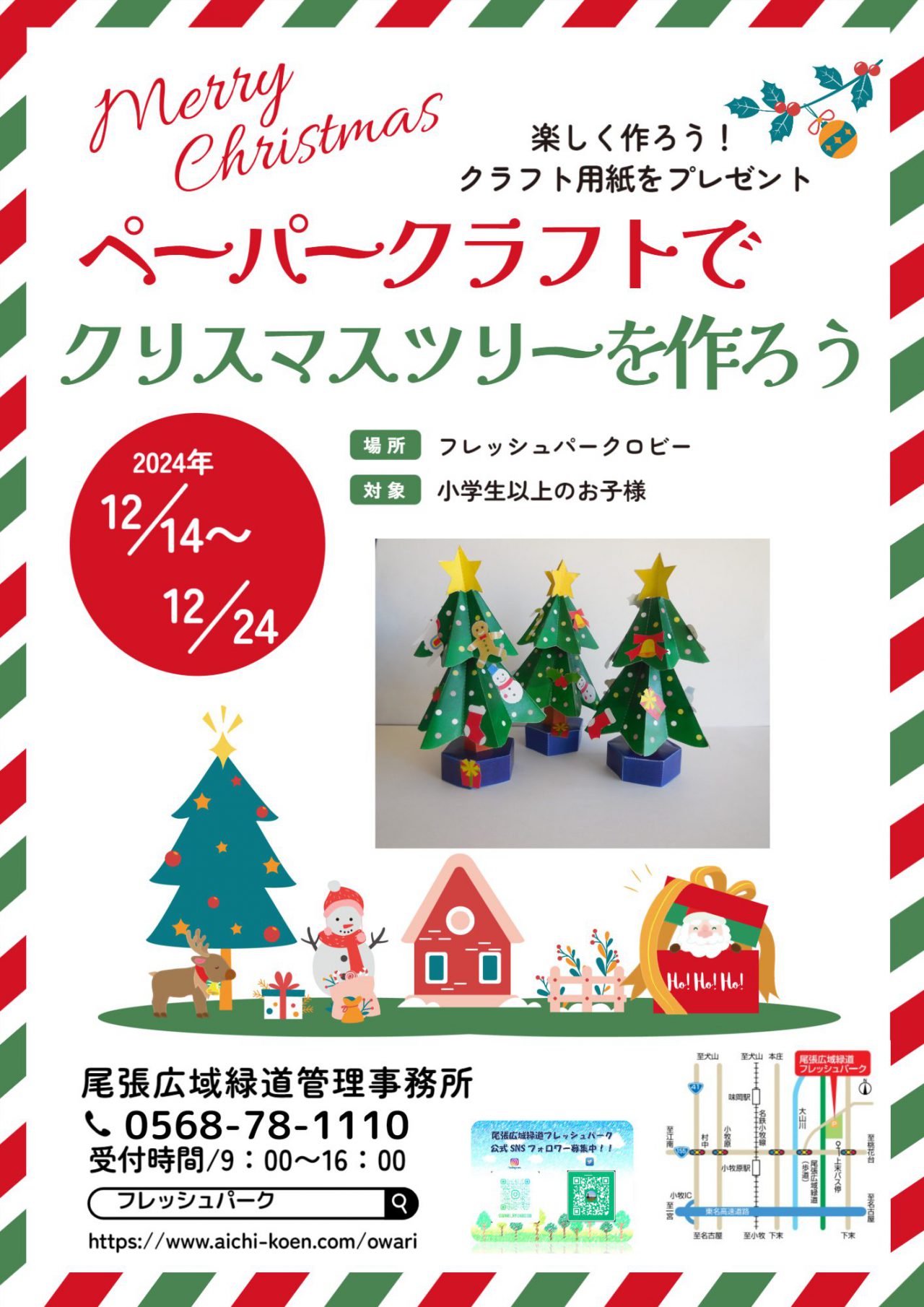 ペーパークラフトでクリスマスツリーを作ろう 更新日 2024/12/14 本日から小学生以上のお子様を対象としてクラフト用紙をプレゼントしておりますので、ぜひフレッシュパークへお越しください(^_^)/^^^
