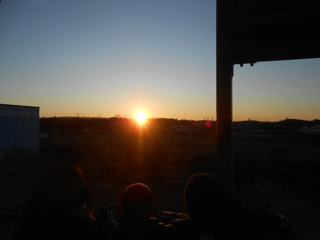 少し寒かったものの、風もなく、天気も良く、素敵な初日の出を見る事ができました(展望塔屋上からの日の出時刻は午前7時9分でした)