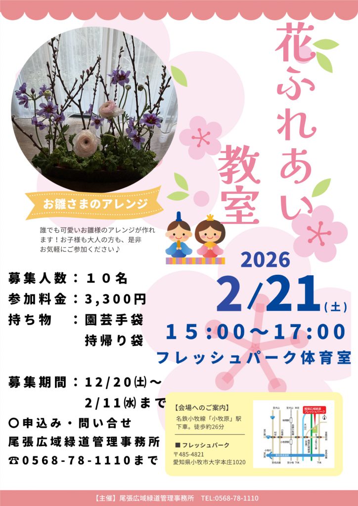 ※花の準備がありますので、2/11(水)を超えてのキャンセルはご遠慮下さい。2/11(水)以降にキャンセルされた場合、材料費をいただく場合があります。