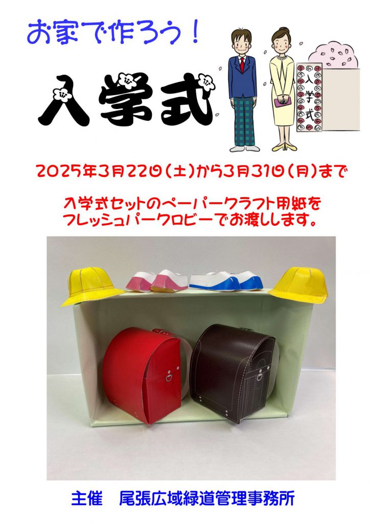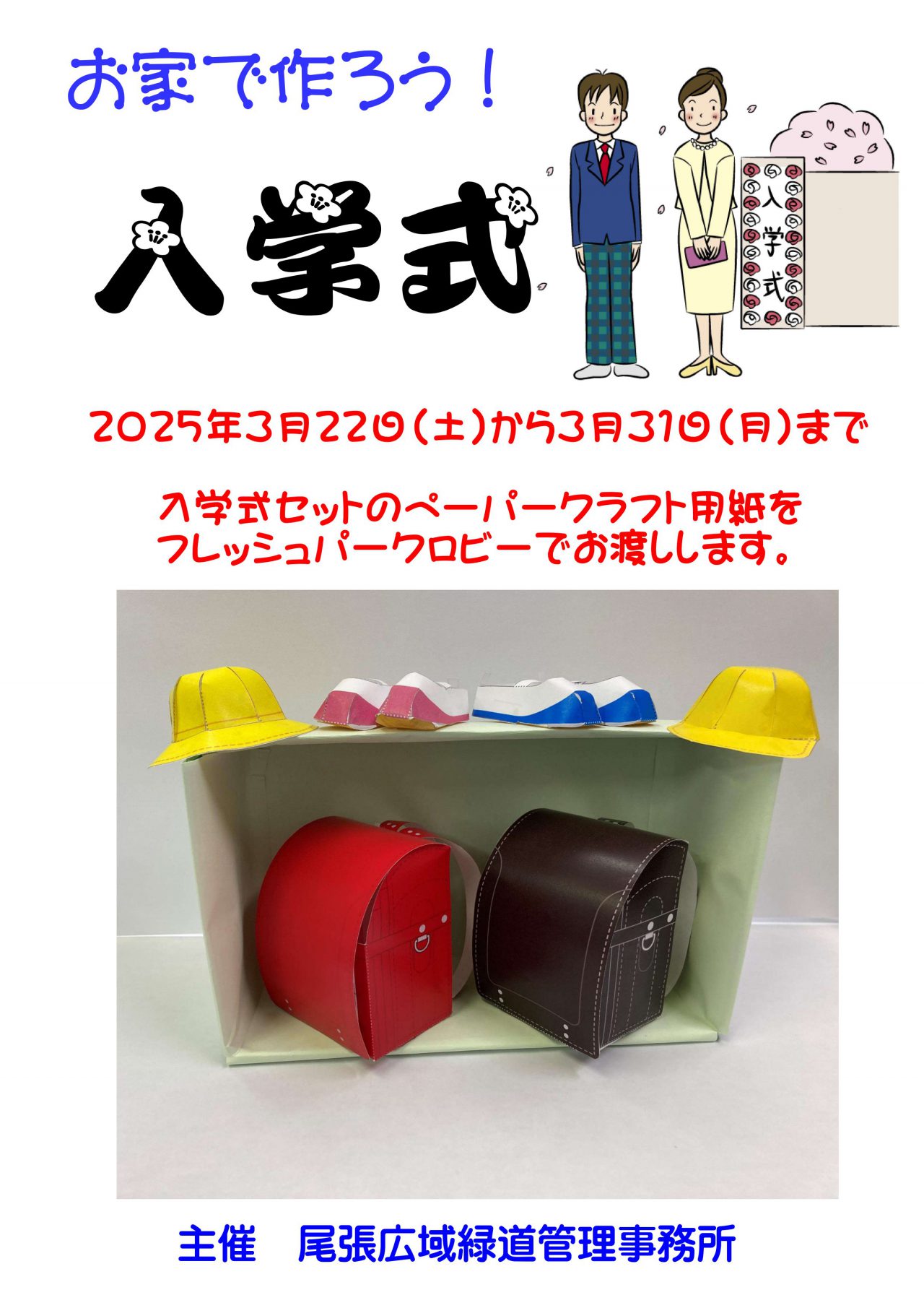 3/31(月)までフレッシュパークセンターのロビーにて、入学式セットのペーパークラフト用紙を配布しておりますp(^ ^)q