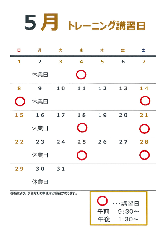 5月のトレーニング講習日