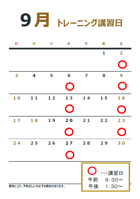 8月のトレーニング講習日は下記のとおりですp(^ ^)q